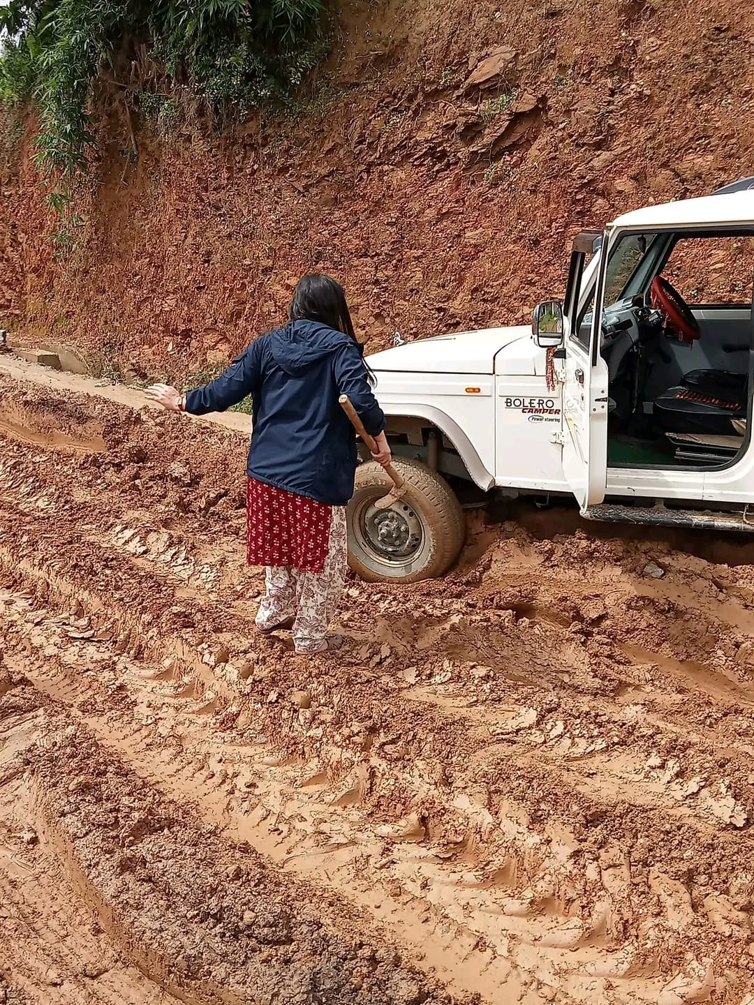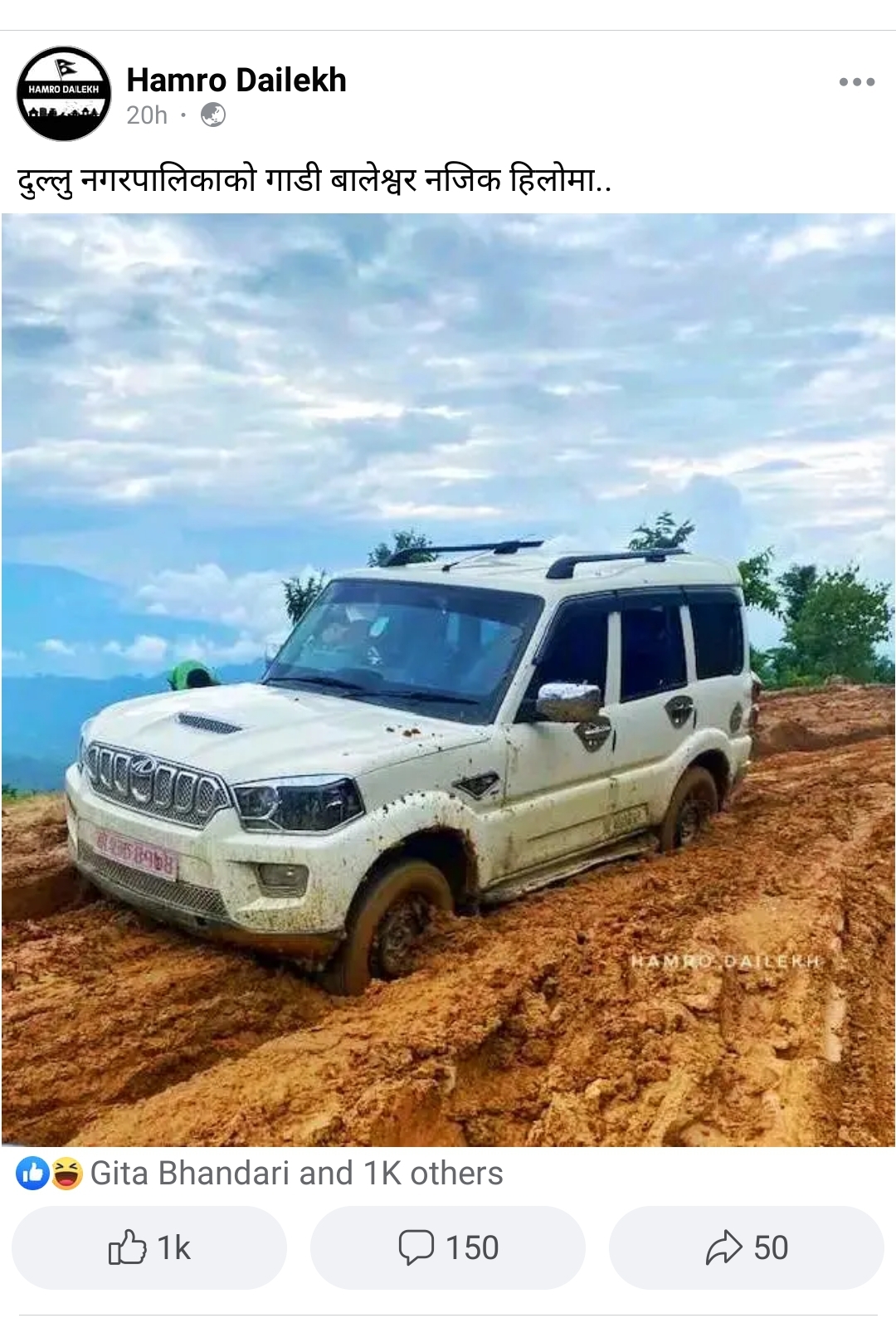यो तस्वीर हिजोको हो, जुन दुल्लु नगरपालिकाको सवारी साधन दुल्लुको हिलाम्मे सडकमा फसेको छ । यो दृश्यले सामाजिक संजाल तताएको छ ।