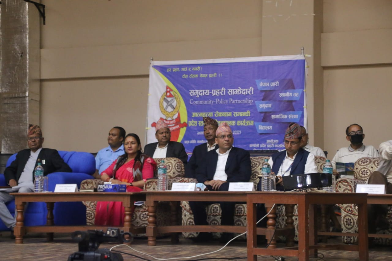 बिश्व आत्माहत्या रोकथाम दिवस “आशा जगाऔं, जीवन बचाऔं” भन्ने मुल नारासहित वीरेन्द्रनगरको मंगलगढीबाट सुरु भएको प्रभातफेरी सुर्खेत सभाहलमा गएर कोणसभामा परिणत भएको थियो । कार्यक्रममा बोल्दै कर्णाली प्रदेशका प्रहरी नायब महानिरीक्षक पोषराज पोखरेलले पछिल्लो समयमा आत्महत्याले विकराल रुप लिने गरेको भन्दै यसको विरुद्धमा सबैलाई सचेत बनाउन कार्यक्रमको आयोजना गरिएको बताए ।