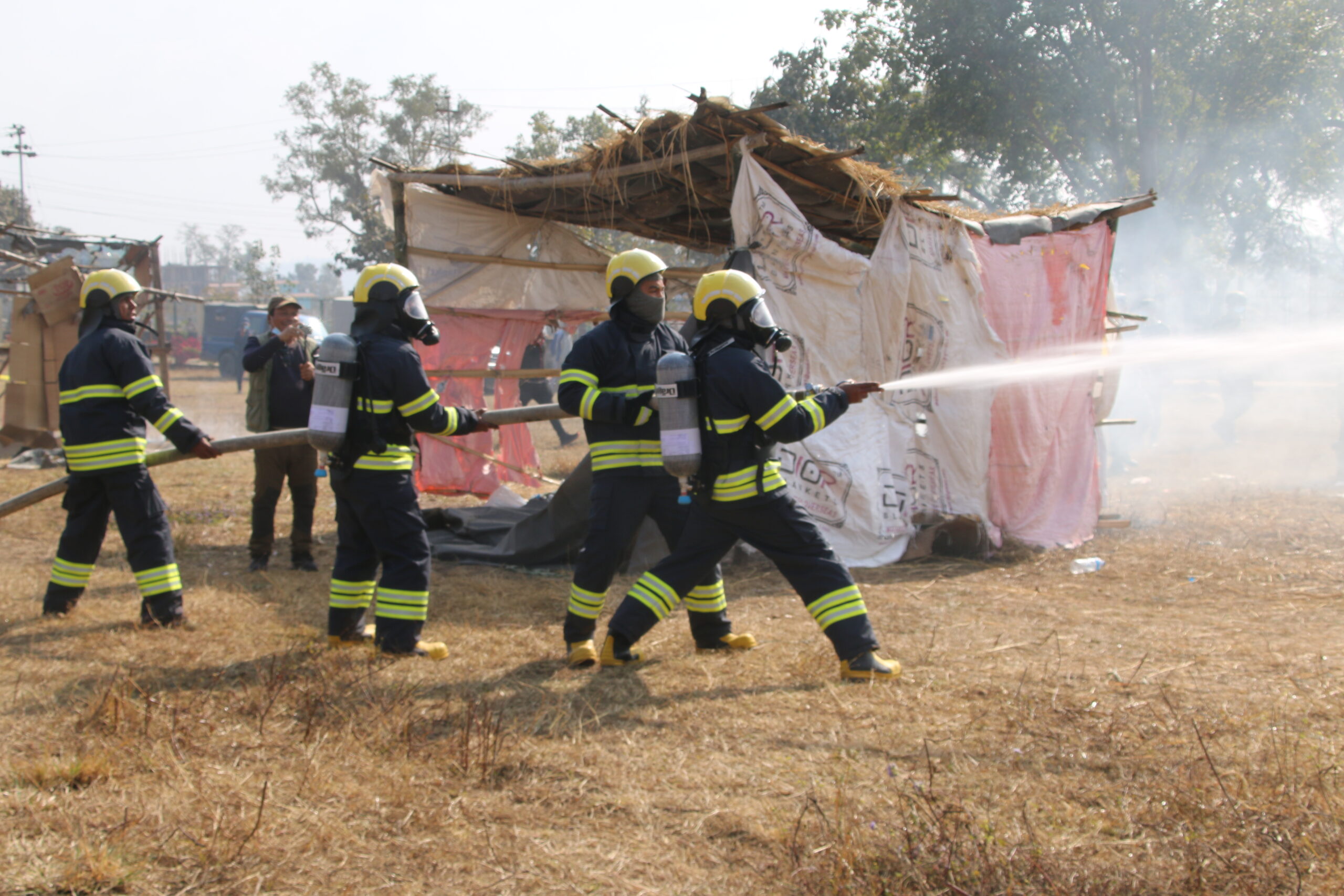 - तस्बिर : घटना अभ्यासमा आगो निभाउँदै